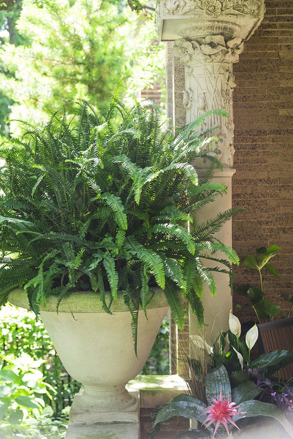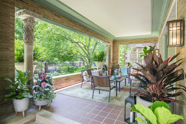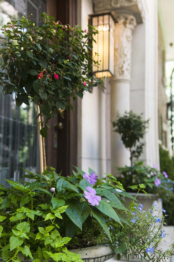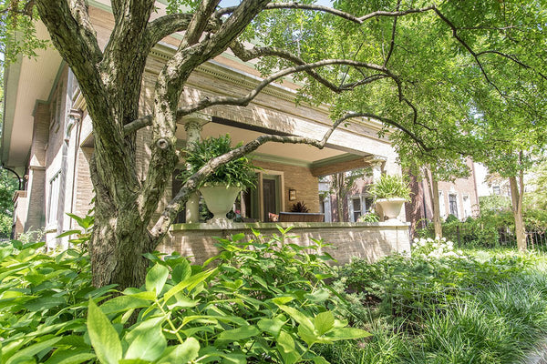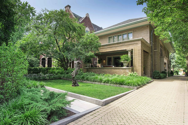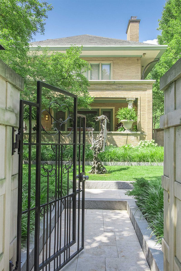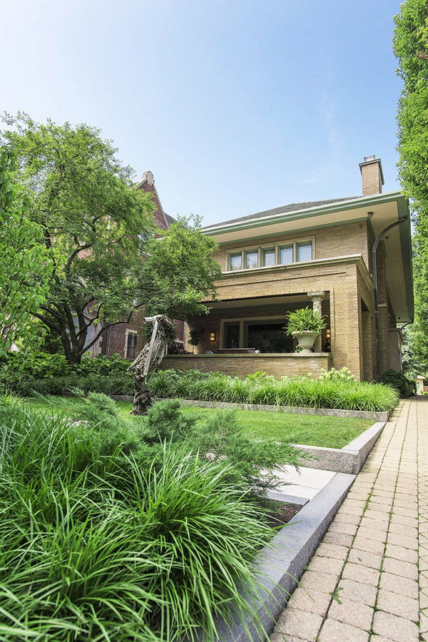 This historic home is a registered landmark in Chicago’s Hyde Park neighborhood. Our client’s goal was to update the landscape while paying homage to the era in which the house was built. Designed by George Maher, the home is known as the ‘Poppy House’ and poppy flower accents are repeated throughout the home in the stained glass windows, limestone pillars, and woodwork. The previous landscape consisted of an awkward series of bluestone landings leading from the front gate to the front porch, as well as some sickly evergreens. The new landscape was designed to reflect the clean lines of the Prairie School style of the home while addressing the 18” of grade change in the front yard. Reclaimed granite curbing was used to create separate levels in the front yard and allow guests to gradually make their way to the front of the home. The center level of the landscape is a simple panel of lawn with a sculpture as the central feature. The client commissioned a local artist to create the sculpture and Chalet’s designers partnered with the artist to determine placement in the garden. The plants chosen for the front yard are all period specific to the early 1900’s and would have been commonly used in gardens of that time.