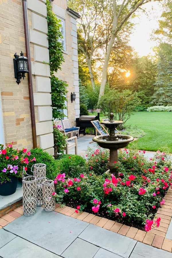 After a comprehensive property renovation was completed for this Wilmette residence a customized landscape management plan was put into action. The landscape consists of twenty five mature trees such as Ash, American Elm, and Crabapples. Large planting beds filled with Annabelle Hydrangea, Wolf’s Eye Dogwood, and Pixie Meadowbrite Coneflower border the property.  A granite cobble driveway welcomes guests to the front of the home and a large bluestone patio provides ample space for entertaining. Weekly visits by an experienced management crew ensure the lasting beauty of the landscape. Careful attention is paid to bed edging, weeding, and trimming all done by hand. The bluestone patios are swept clean each week.  Every other year, mason sand is swept into the joints to extend the life of the patio. Window boxes on the front of the home, as well as pedestal containers are planted seasonally to bring continuous color to the landscape. The mature trees on the property are trimmed annually and an extensive regime of fertilization and preventative care applications ensure the trees will be healthy for the future. The organic turf care program keeps the lawn healthy throughout the year. Slow release organic fertilizers and leaf compost are applied to the planting beds annually. Careful attention to detail paired with sustainable care practices ensure the client’s property will be beautiful for the life of the landscape.